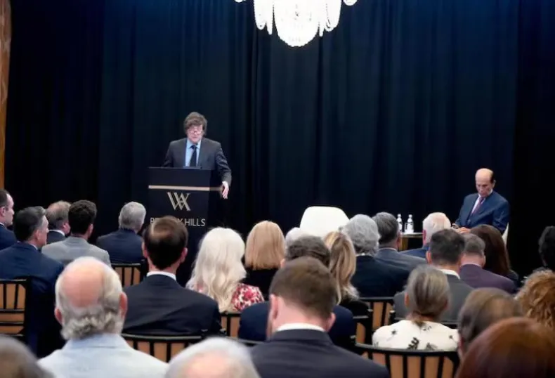 El encuentro, que duró una hora y media y fue el plato fuerte de la agenda de Milei en esta ciudad californiana, empezó con una disertación del presidente sobre la marcha del programa económico, los logros durante su gestión y las perspectivas positivas que el gobierno ve a futuro.