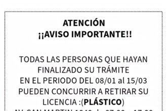 Desde la Dirección General de Tránsito convocan a todas aquellas personas que tramitaron su primera licencia o la renovación de la misma en el período comprendido entre el 8 de…
